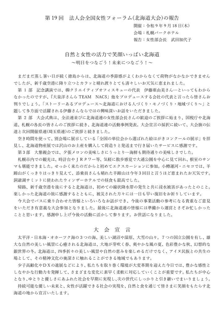 第19回 法人会全国女性フォーラム(北海道大会)が開催されました。