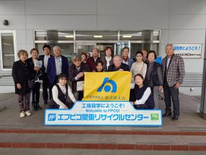 午前中は茨城県にある食品トレーの製造・リサイクルで国内No.1シェアを誇るエフピコ関東リサイクル工場を見学しました。スーパーで使われている食品トレーが工場で選別されリサイクルされている行程を間近に見学できて大変勉強になりました。日常生活におけるリサイクルへの意識が高まるような研修でした。