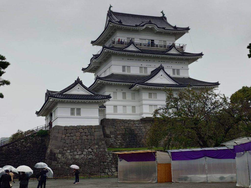 今回メインの見学先は、戦国時代に難攻不落・無敵の名城として名をはせた「小田原城」です。当日があいにくの雨模様だったのが残念でしたが、間近で見上げる小田原城は大迫力で感動しました。