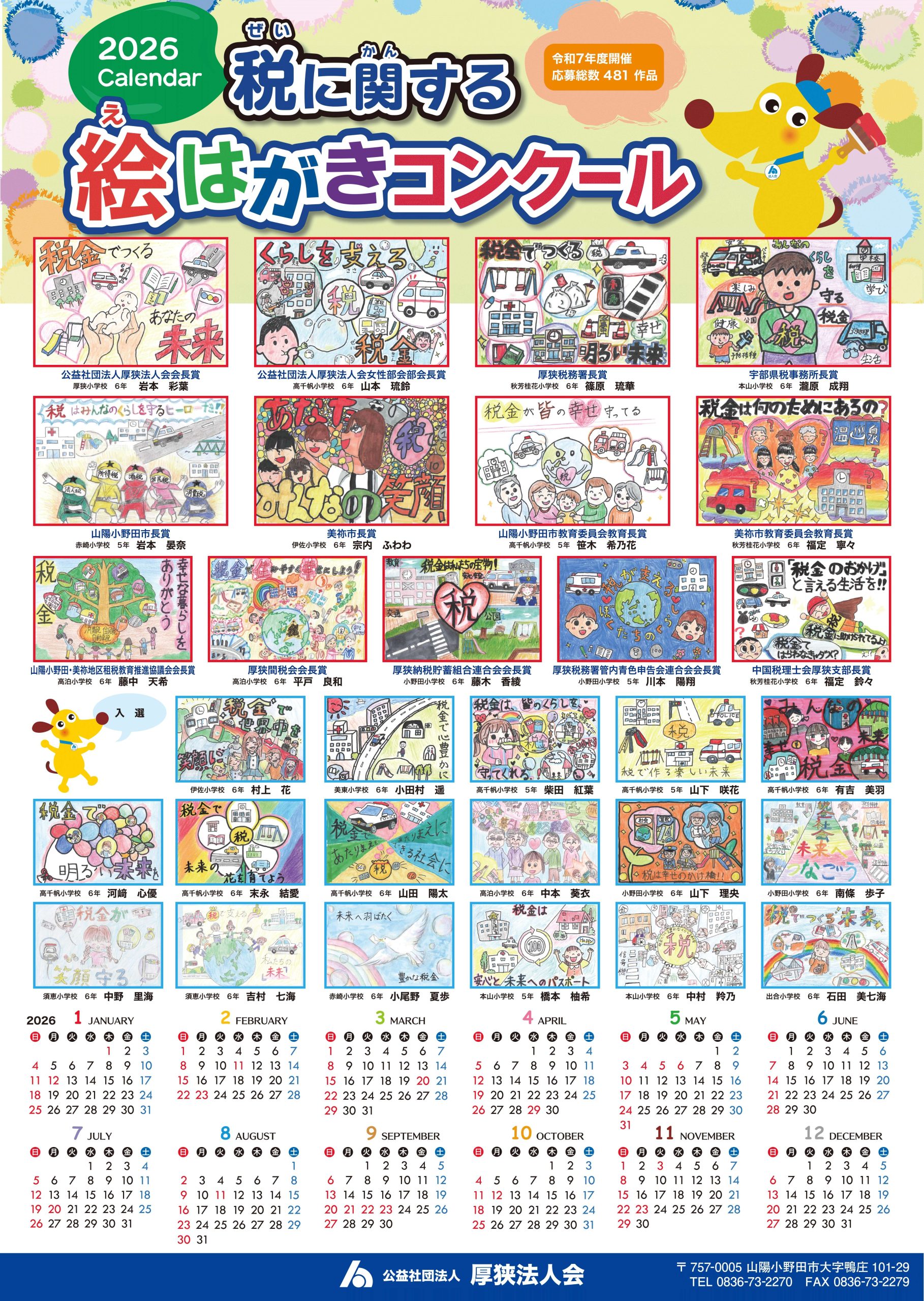 「税に関する絵はがきコンクール」受賞作品の2026年カレンダーが