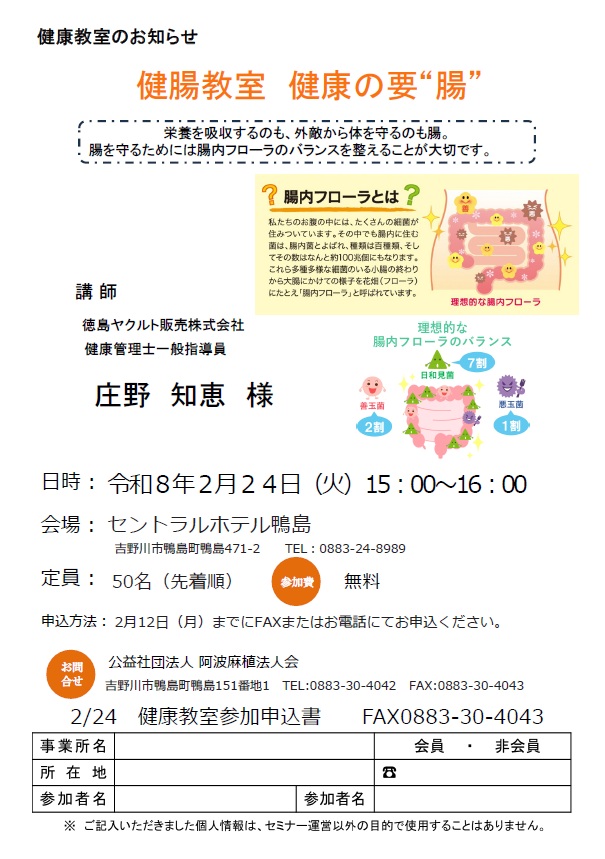 テーマ:「健腸教室 健康の要”腸”」
