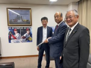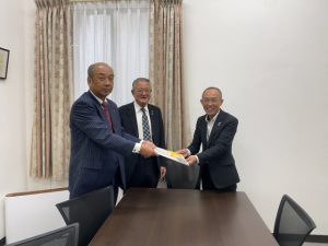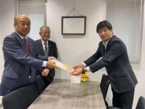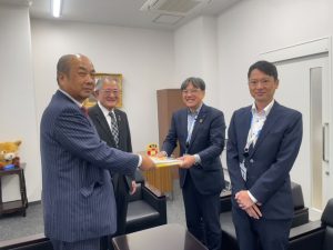組織委員会では、毎年9月から12月の間を「会員増強月間」とし、会員の増強に取り組んでおり、今年度も令和7年10月22日(水)、西川里樹会長及び大武良彦組織委員長が市内8金融機関を訪問して当会活動のパンフレット等を手交し、当会未加入者の企業さまに対する当会への加入勧奨等をお願いしました。会長及び組織委員長が訪問し金融機関幹部の方々に直接行う協力要請は、当会の取組意識の表れとして受け止めていただており、当会の会員増強に貢献いただいています。