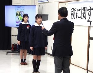 光税務署管内納税貯蓄組合連合会が実施する「中学生の税に関する作文・書写コンクール」に共催し、当会会長賞を受賞された生徒に対し表彰を行いました。