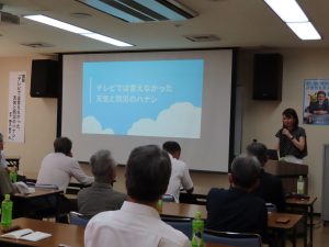 今回は、気象予報士の勝丸恭子様をお招きし「テレビでは言えなかった、天気と防災のハナシ」という演題にてご講演いただきました。テレビでは言えないようなお話や、うろこ雲と羊雲の違いや見方などとても参考になり有意義な時間となりました。