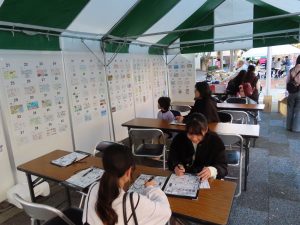 このお祭りは、2012年から始まり、地域住民の方に親しまれているイベントとなっております。当日はお子さん連れの家族が多く、風船とポケットティッシュに加え、昨年と同様に財務省主税局の2種類のうんこ税金ドリルを配布しました。