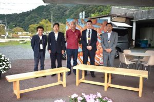 今年度は道の駅来夢とごうちへ安芸太田町内産の桧を使用した木製ベンチを寄贈させていただきました。