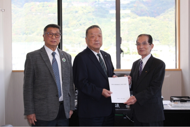 池田法人会では、令和7年11月6日(木)に、池尻会長と大平税制委員長が、三好市 高井美穂市長並びに伊丹征治市議会議長と面会して、意見交換と実現に向けた要望活動をしました。