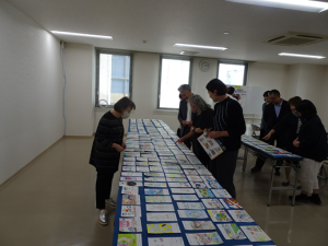 絵はがきコンクール応募作品の審査会を実施しました。税務署長、統括国税調査官及び中学校美術教諭に