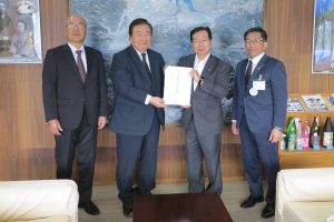 秋の交通安全週間に、伊予西条税務署、交通安全協会の皆様と共に、通行中の皆様に