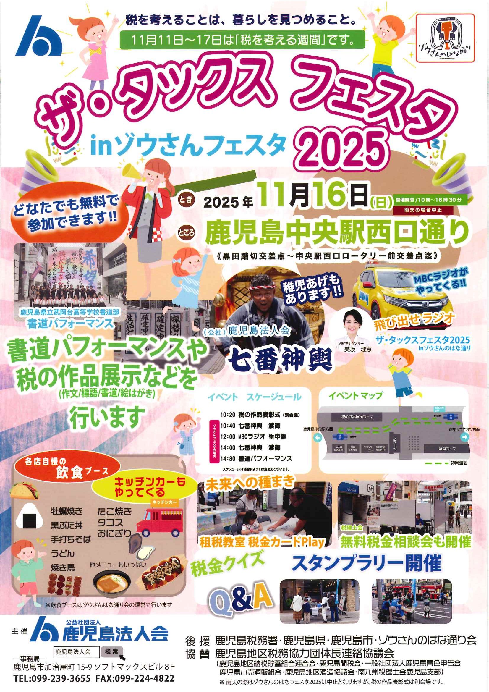 鹿児島法人会では、11月16日(日)10:00よりゾウさんのはな通り(鹿児島中央駅西口通り)