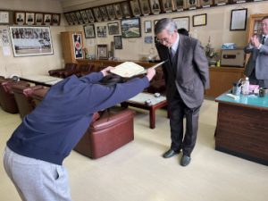 について審議されそれぞれ承認されました。また、卒業会員の吉越稔さんに記念品が手渡され