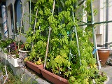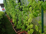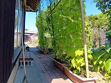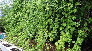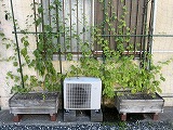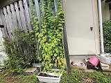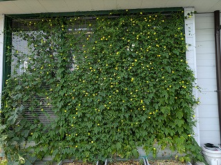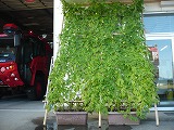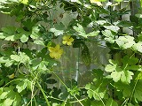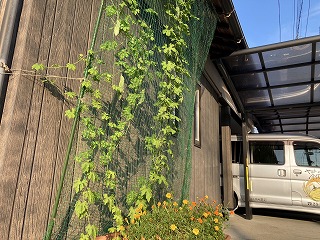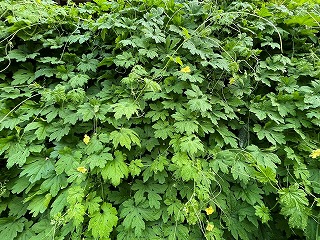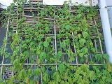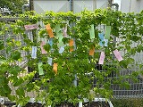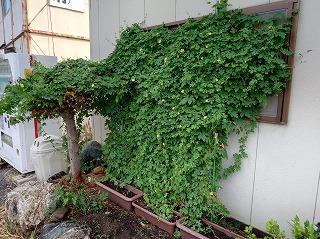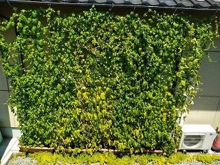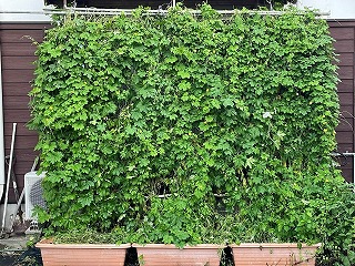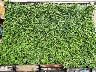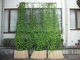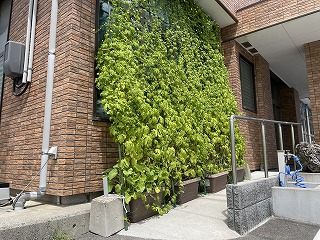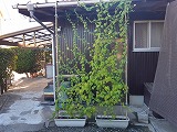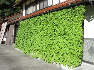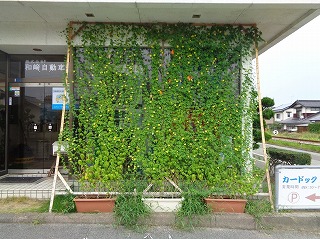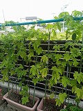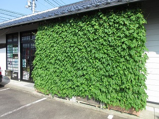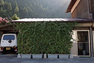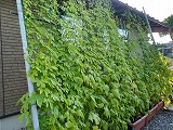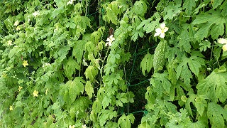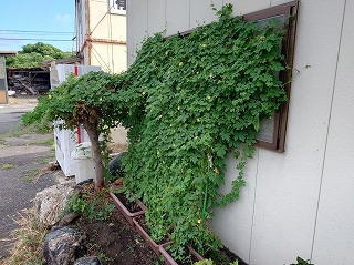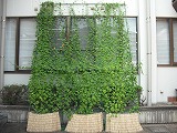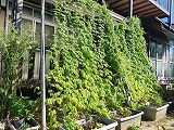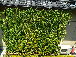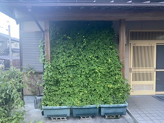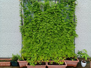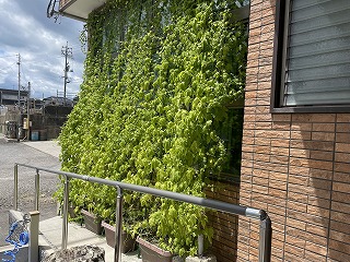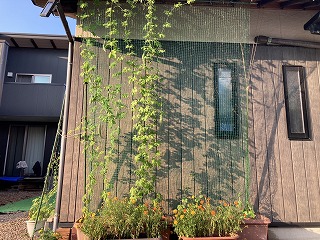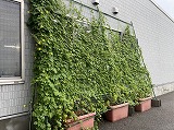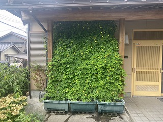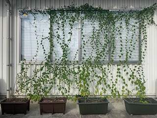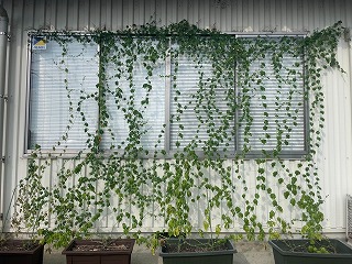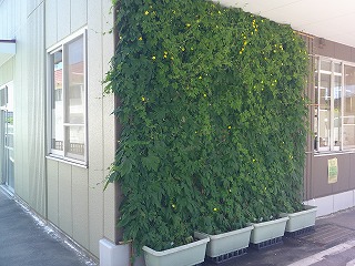 プランターに植えたゴーヤです。窓を覆ったゴーヤの葉は日差しを遮り、また蒸散作用 により室内温度を2~3度下げ、見た目も涼しく最後はゴーヤを食します。 令和7年度は64団体(事業所及び個人)の皆様から121作品の応募がありました。 ありがとうございました。 以下に作品をご紹介しております。