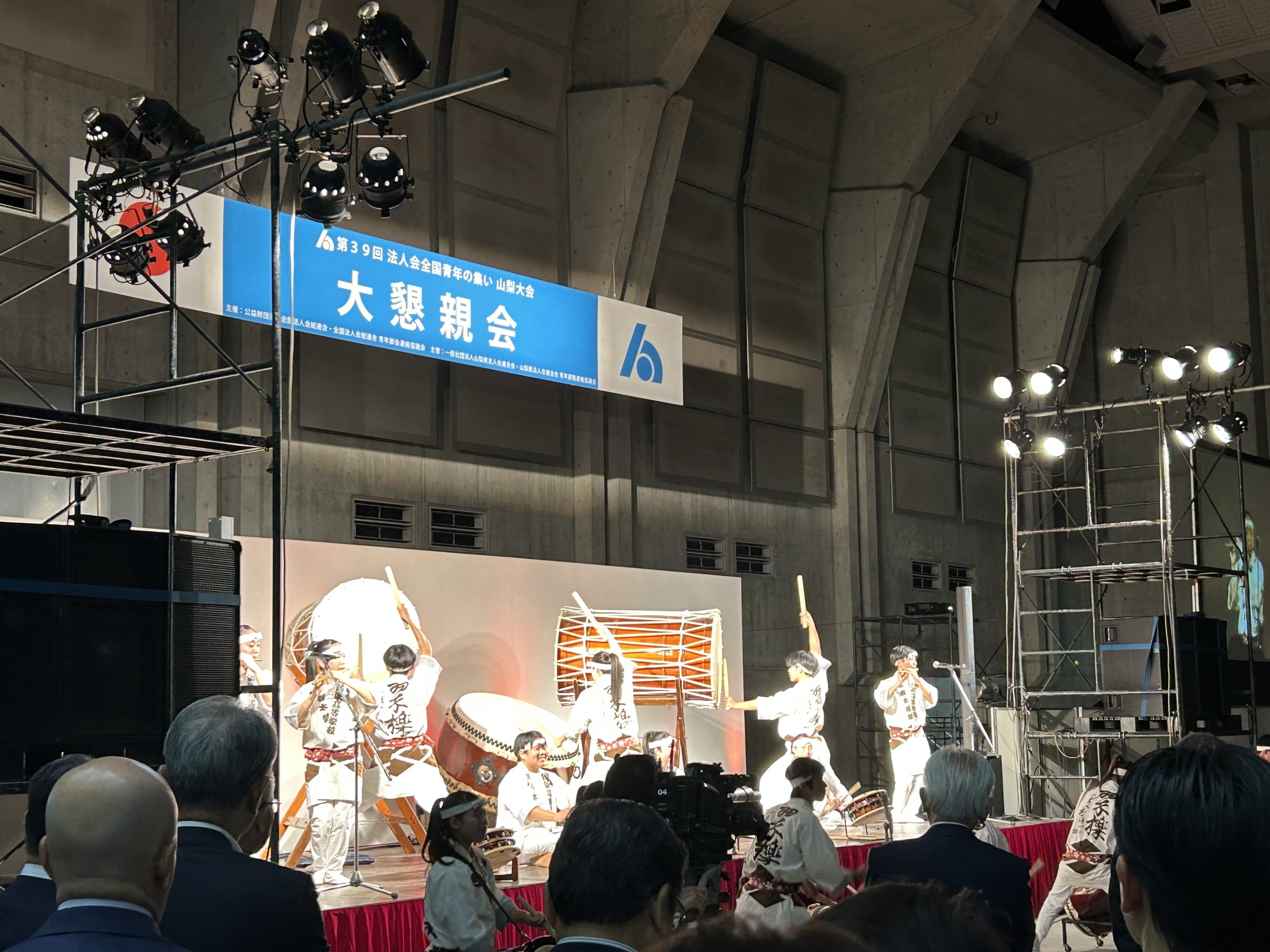大懇親会のオープニングアトラクションでは全国でも優秀な成績を収める山梨県立笛吹高等学校すいれき太鼓部の力強い太鼓の演奏が披露されメインアトラクションには山梨県笛吹市出身でレミオロメンのメンバー「藤巻亮太」氏がグループでの代表曲やソロ曲を含む数曲を歌唱し会場を大きく沸かせていました。
