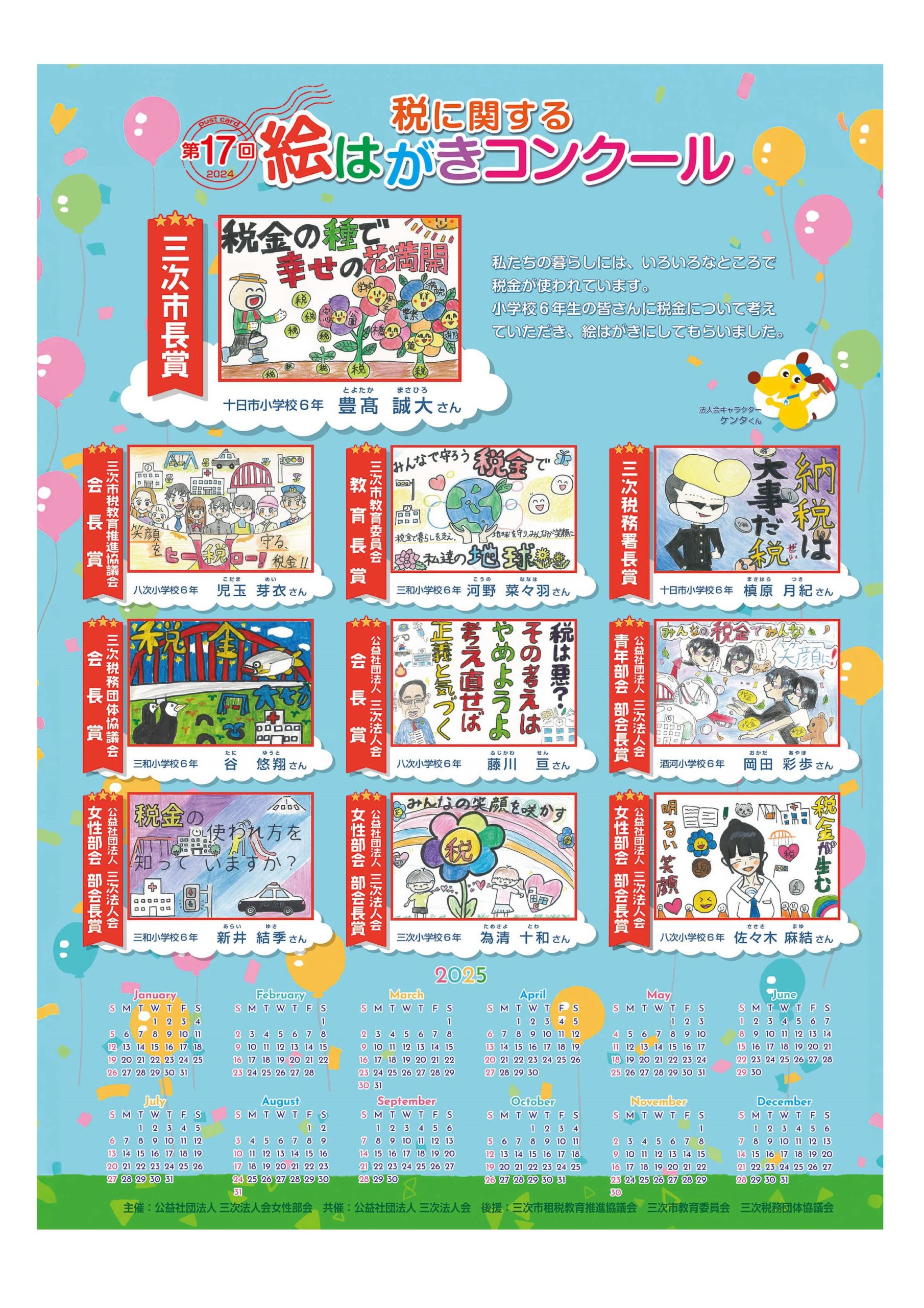 法人会女性部会では、小学生への租税教育活動として、毎年、「税に関する絵はがきコンクール」を実施しています。租税教室などを通じて、学童に”税の大切さ”や”税の果たす役割”について学んでもらい、その知識や感想を”絵はがき”にすることで、税に対する理解をより深めてもらうことが目的です。