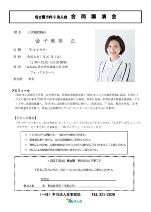 ◎ 名古屋市内9法人会 合同講演会 開催のご案内 ◎