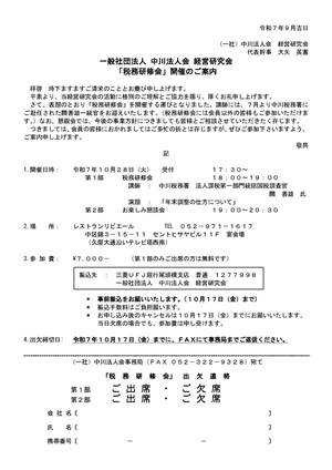 【研 修 会】 講師 : 中川税務署法人課税第1統括官 安藤 準一郎 氏 テーマ : 令和7年度 税制改正について