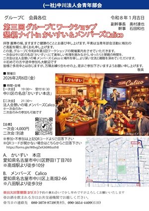 ◎ 令和7年度 第3回WS 「懇親ナイトinかいすい&メンバーズCalico」開催のご案内 ◎