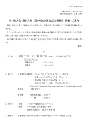 ◎ 愛知支部 「活動報告会&懇親会」開催のご案内 ◎