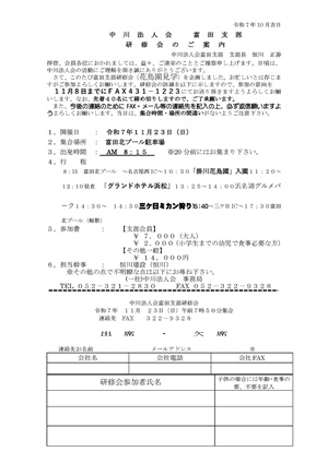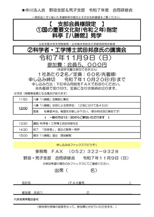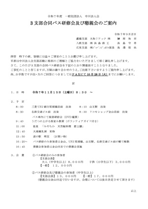 ◎ 広見・八熊・露橋支部 「合同バス研修会および懇親会」開催のご案内 ◎