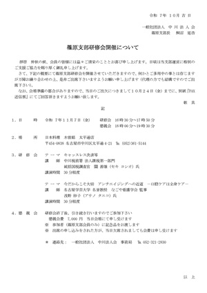◎ 篠原支部 「研修会」開催のご案内 ◎