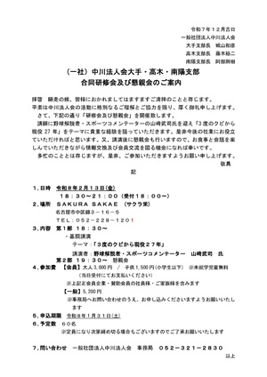 ◎ 大手・高木・南陽支部 「合同研修会及び懇親会」開催のご案内 ◎