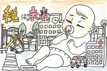 法人会女性部会では、小学生への租税教育活動として、毎年、「税に関する絵はがきコンクール」を実施しています。租税教室などを通じて、学童に”税の大切さ”や”税の果たす役割”について学んでもらい、その知識や感想を”絵はがき”にすることで、税に対する理解をより深めてもらうことが目的です。