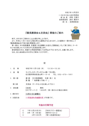 ◎ 「署長講演会&交流会」開催のご案内 ◎