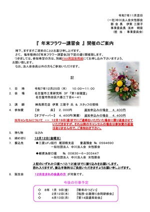 ◎ 「年末フラワー講習会」開催のご案内 ◎