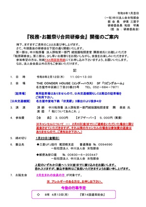 ◎ 「税務・お雛祭り合同研修会」開催のご案内 ◎