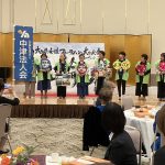 当会からは10名の女性部会員と事務局2名が参加しました。第1部「集い」ではまず初めに女性部会スローガンを唱和。主催者及び来賓あいさつ、活動報告がおこなわれなした。第2部の「記念講演」では『高崎山のサル社会』と題し大分市商工労働観光部観光課大分市高崎山管理センター専門員藤田忠盛氏の講演がおこなわれました。第3部の「昼食会」ではアトラクションや食事を楽しみました。最後に次回開催地は中津ということで、当会女性部会メンバーが壇上にあがり、お手製のうちわを持ってあいさつをしました。