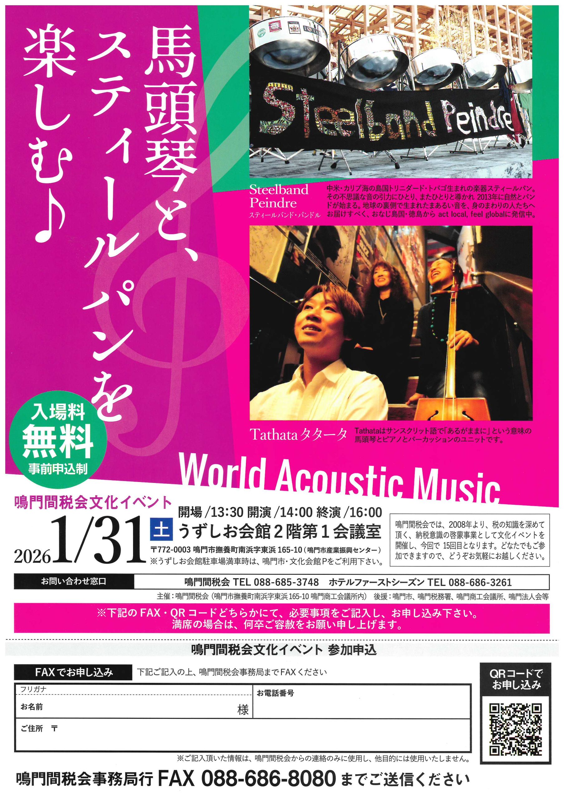 鳴門間税会 文化イベント 馬頭琴と、スティールパンを楽しむ ♪