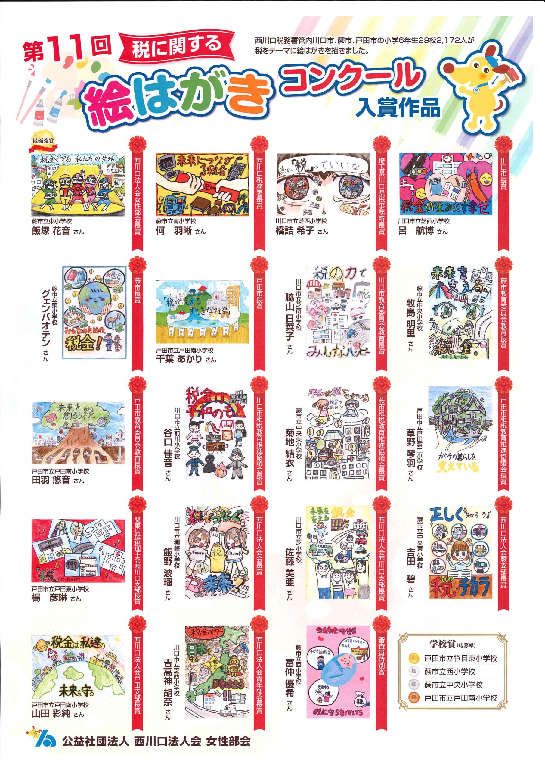 法人会女性部会では、小学生への租税教育活動として、毎年、「税に関する絵はがきコンクール」を実施しています。租税教室などを通じて、学童に”税の大切さ”や”税の果たす役割”について学んでもらい、その知識や感想を”絵はがき”にすることで、税に対する理解をより深めてもらうことが目的です。