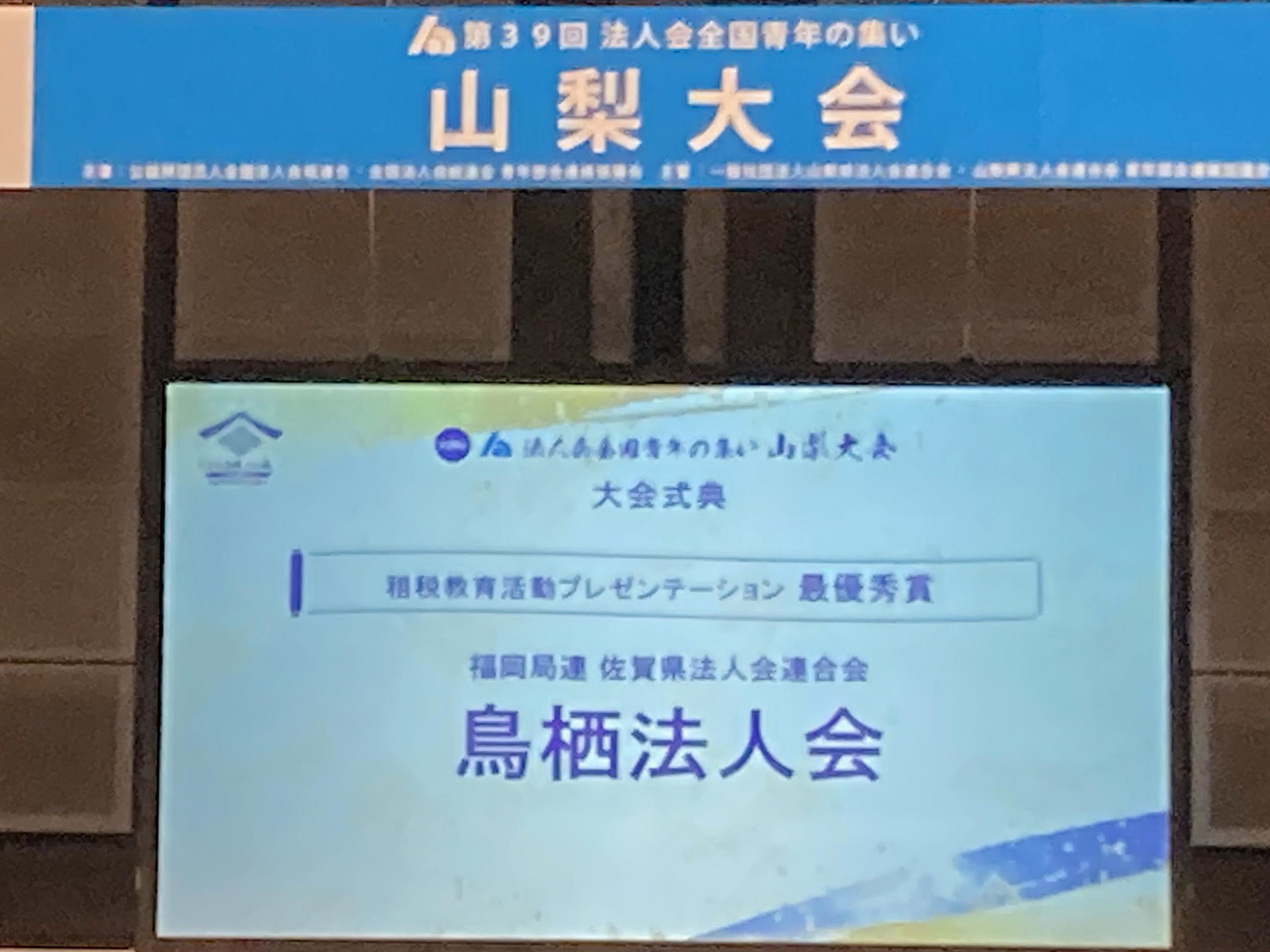 鳥栖法人会青年部会が福岡局連代表として租税教育プレゼンテーションを行い、見事最優秀賞を受賞されました。