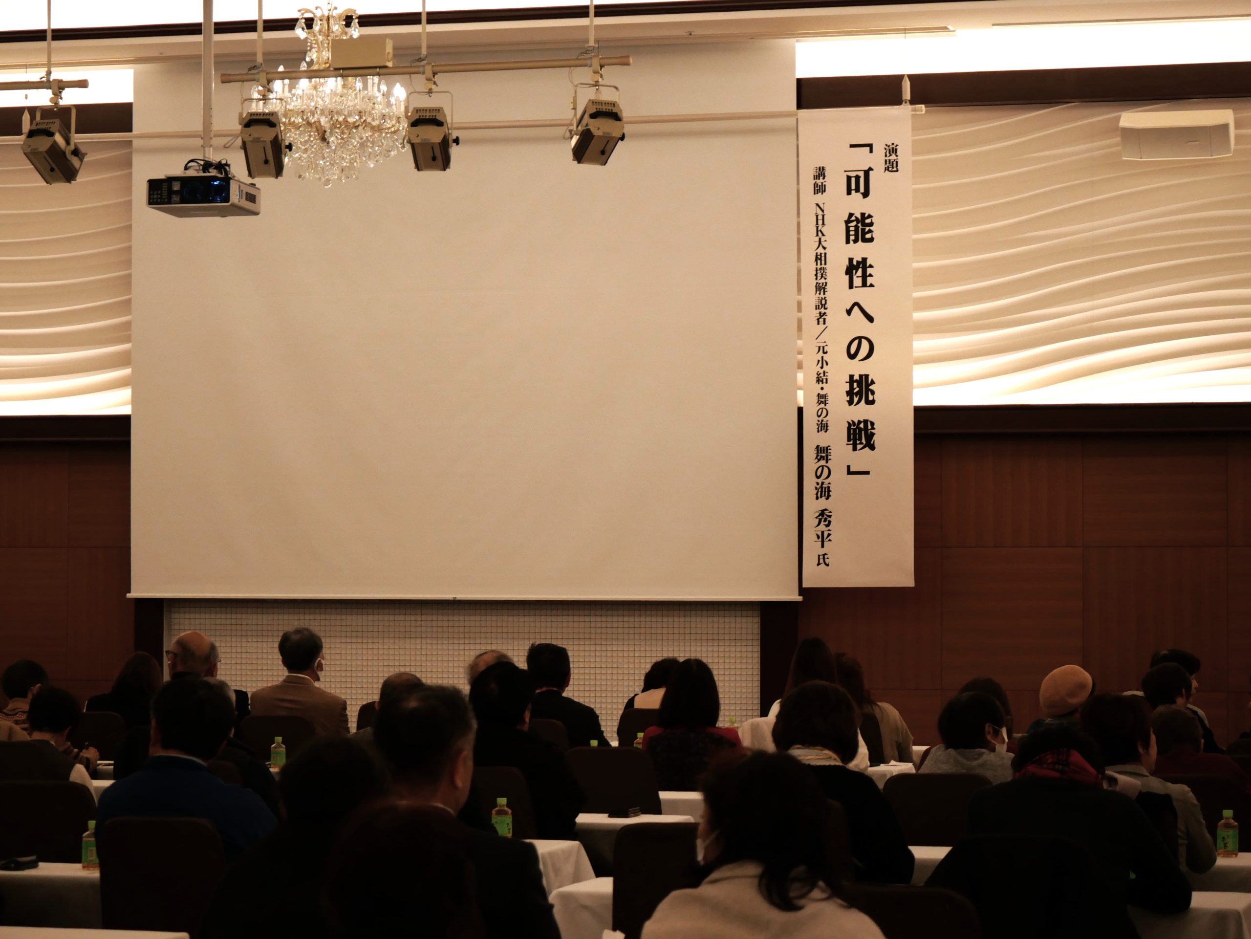 2月13日(水)NHK相撲解説者 元小結 舞の海秀平氏を講師に招き、ホテルマリターレ創世にて公開講演会を開催しました。県内より186名が聴講されました。