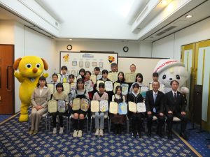 法人会女性部会では、小学生への租税教育活動として、毎年、「税に関する絵はがきコンクール」を実施しています。租税教室などを通じて、”税の大切さ”や”税の果たす役割”について学んでもらい、その知識や感想を”絵はがき”にすることで、税に対する理解をより深めてもらうことが目的です。女性部会員は審査会や表彰式を行います。令和7年度は15校391作品の応募がありました。