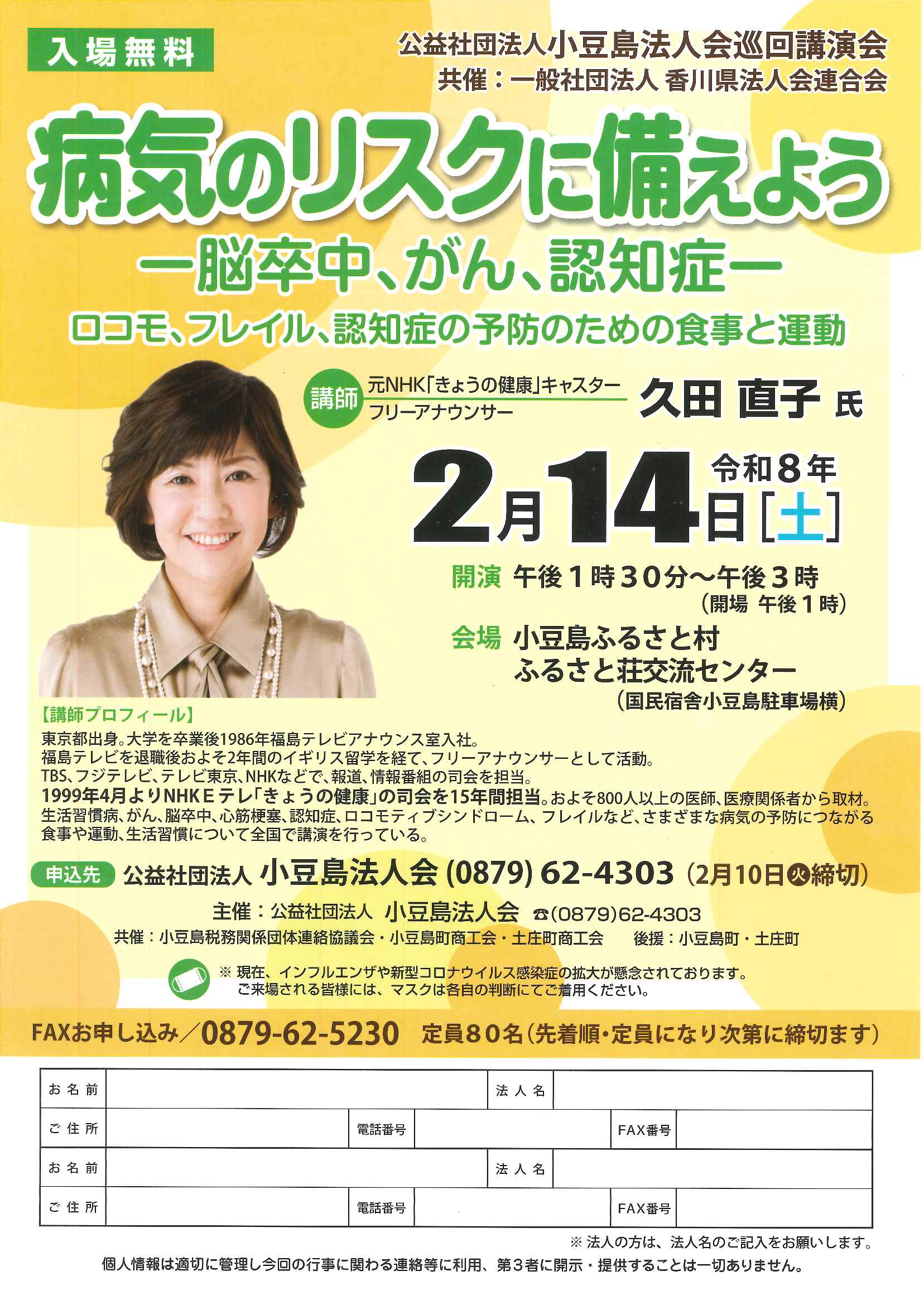 講 師 元NHK「きょうの健康」キャスター・フリーアナウンサー