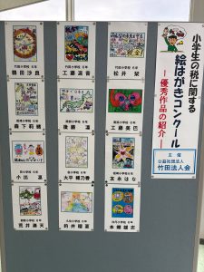 2月7日から3月6日の間、竹田市玉来のサンリブ竹田の2階エスカレーター前広場で小・中・高校生の税に関する作品展が開催されており、今夏法人会が市内の小学6年生を対象に実施した「税に関する絵はがきコンクール」の優秀作品9点も展示されています。是非足をお運びください。