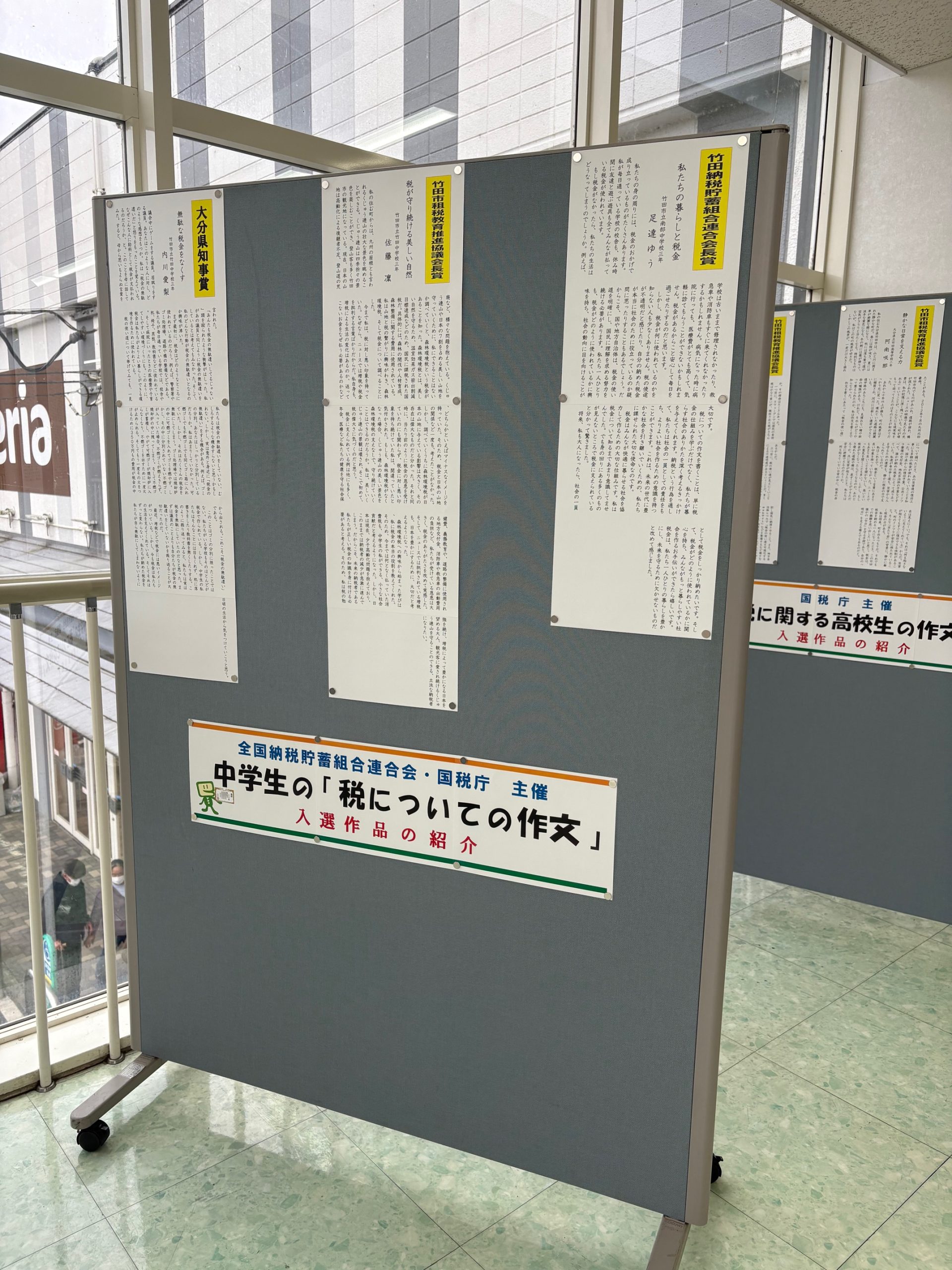 11月11日から17日の「税を考える週間」関連行事として今月11日㈫から26日㈬までの間、竹田市玉来のサンリブ竹田の2階エスカレーター前広場で小・中・高校生の税に関する作品展が開催されており、今夏法人会が市内の小学6年生を対象に実施した「税に関する絵はがきコンクール」の優秀作品12点も展示されています。是非足をお運びください。