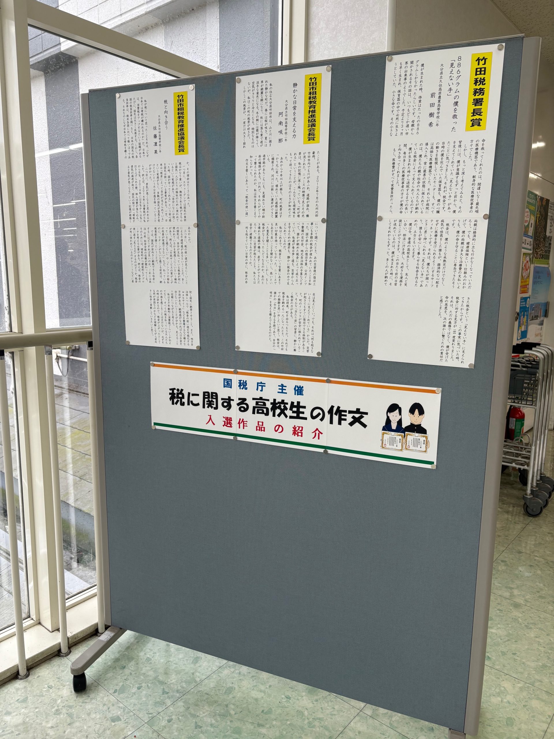 なお、全国納税貯蓄組合連合会と国税庁が主催し、全法連が後援する中学生の税の作文コンクールで、今年度全国から寄せられた460,918編の作文の中から竹田中学校3年生の廣末啓樹さんの作文が国税庁長官賞を受賞されました。
