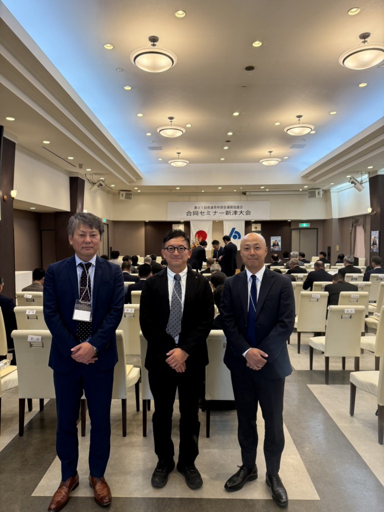 令和6年9月13日(金)に新潟市のホテルイタリア軒において令和6年度関東信越法人会連絡協議会青年部会連絡協議会(局連)合同セミナーが開催されました。このセミナーは2年に1度、関東信越国税局管内の埼玉、茨城、栃木、群馬、長野、新潟の各県連の青年部会が一堂に会するもので、当法人会青年部会からは上村友博部会長、長谷川吉徳副部会長、西野和貴幹事の3名が参加しました。基調講演は柏崎市出身の(株)ジャパン・ベースボール・マーケティング代表取締役 村山哲二氏から「プロ野球の指揮官に学ぶ、一流のチームマネージメントについて」と題してご講演いただきました。今回は、当県が開催県であることから当法人会青年部会長も早い段階から企画運営に加わるとともに、当日参加の3名は運営スタッフとして部会長サミットを担当しました。