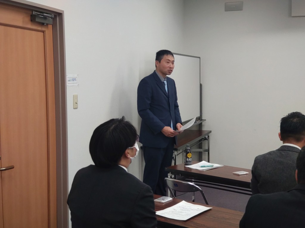 青年部会では令和5年12月12日(火)、あてま高原リゾート ホテルベルナティオにおいて、(株)当間高原リゾート 上席執行役員 統括総支配人兼事業統括室長 佐野智之様を講師に迎え、青年部会「研修会」を開催しました。佐野様からは「ベルナティオの取組み」と題し、新採用社員の3年間の離職率が30%近いホテル業界において同社は5%と高い定着率を誇る背景や、高い稼働率を支える国内トップクラスのサービス提供のバックヤードでの取組みなどについて、熱く語っていただきました。11名の参加者は皆、最後まで熱心に聞き入っていました。その後、ホテル内の会場をお借りし、重野副会長の挨拶の後、活発な意見交換を行いました。