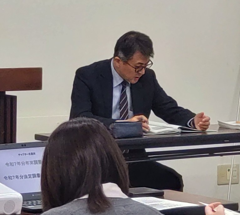 令和7年度の経理事務実務者研修会は、「所得税の基礎控除等の見直しに関する研修会」を十日町税務署法人課税部門 庭野統括国税調査官を講師に招き、開催しました。十日町税務署との共催により11月5日(水)と11日(火)は十日町商工会議所会館で、11月18日(火)は津南町総合センターで開催し、合計で50人の出席がありました。研修では、令和7年度税制改正に伴う所得税の「基礎控除」や「給与所得控除」に関する見直しや「特定親族特別控除」等について、国税庁作成の動画を視聴後、庭野統括官から要点を説明いただきました。