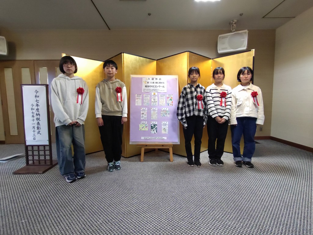 令和7年11月13日(木)ラポート十日町において、十日町税務署管内税務関係団体連絡協議会(税団会)ほか関係3団体による納税表彰式及び当法人会主催の記念講演会を開催しました。冒頭、税団会会長である十日町法人会 滝沢重雄会長が主催挨拶を行い、その後、「税に関する絵はがきコンクール」の上位5作品の表彰などが行われました(絵はがきコンクールの受賞作品については「女性部会・青年部会」のページをご覧ください)。
