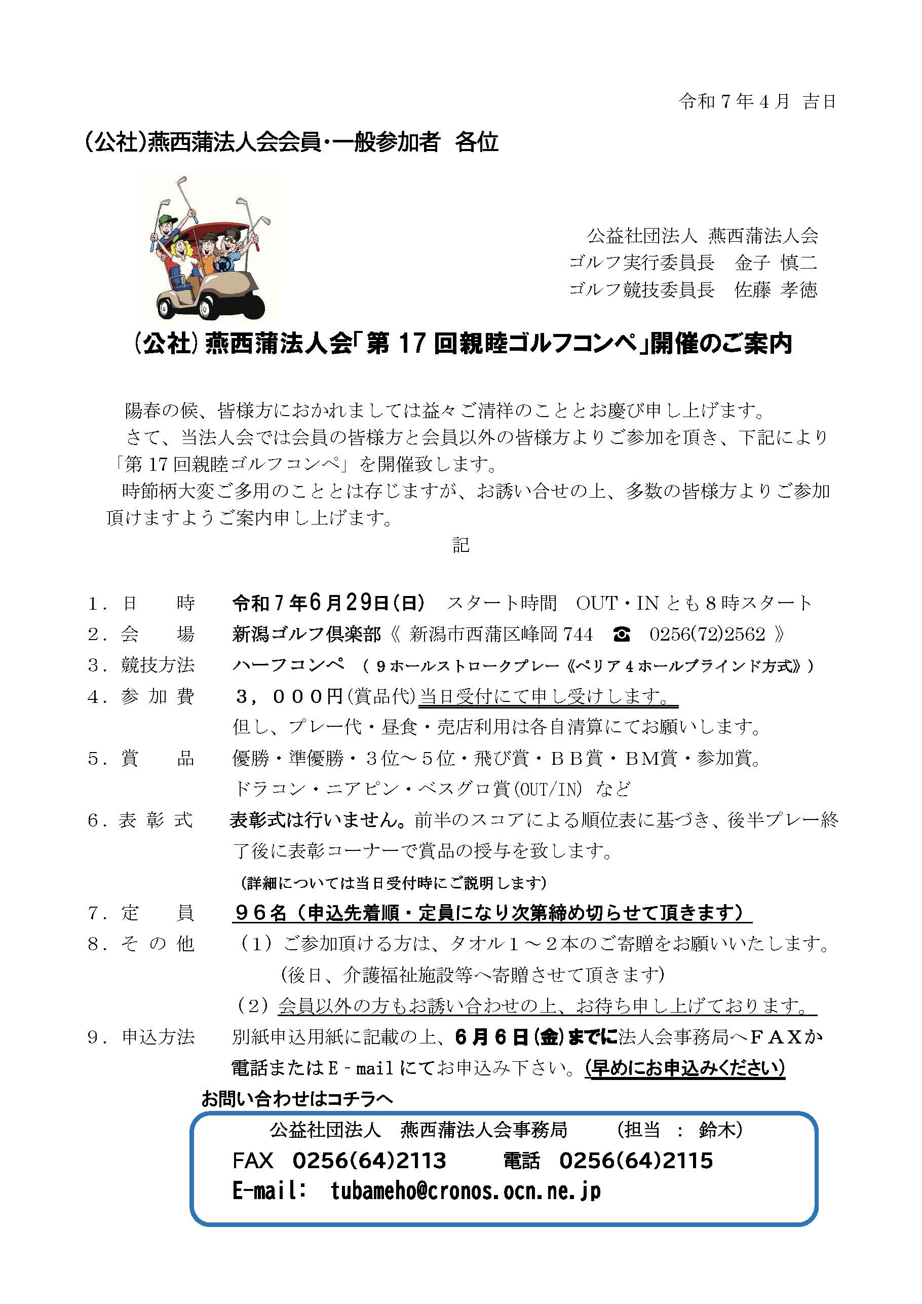 (公社)燕西蒲法人会「第17回親睦ゴルフコンペ」開催