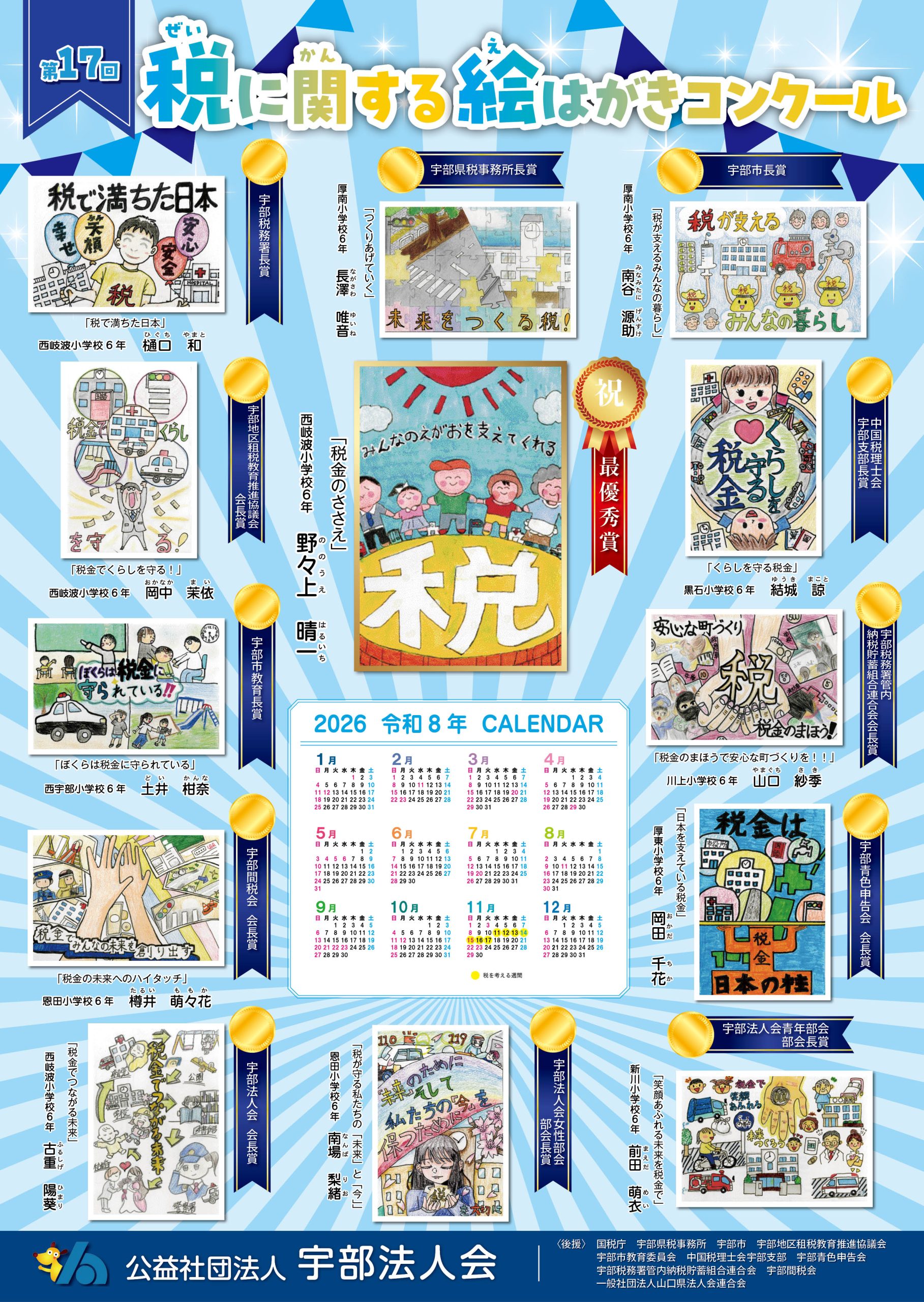 また、入賞作品を掲載した令和8年度のカレンダーを作成しております。画像は下記リンク先よりご覧いただけます。カレンダー原本をご希望の方は宇部法人会事務局(0836-33-8610)までお電話下さい。