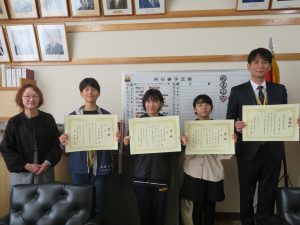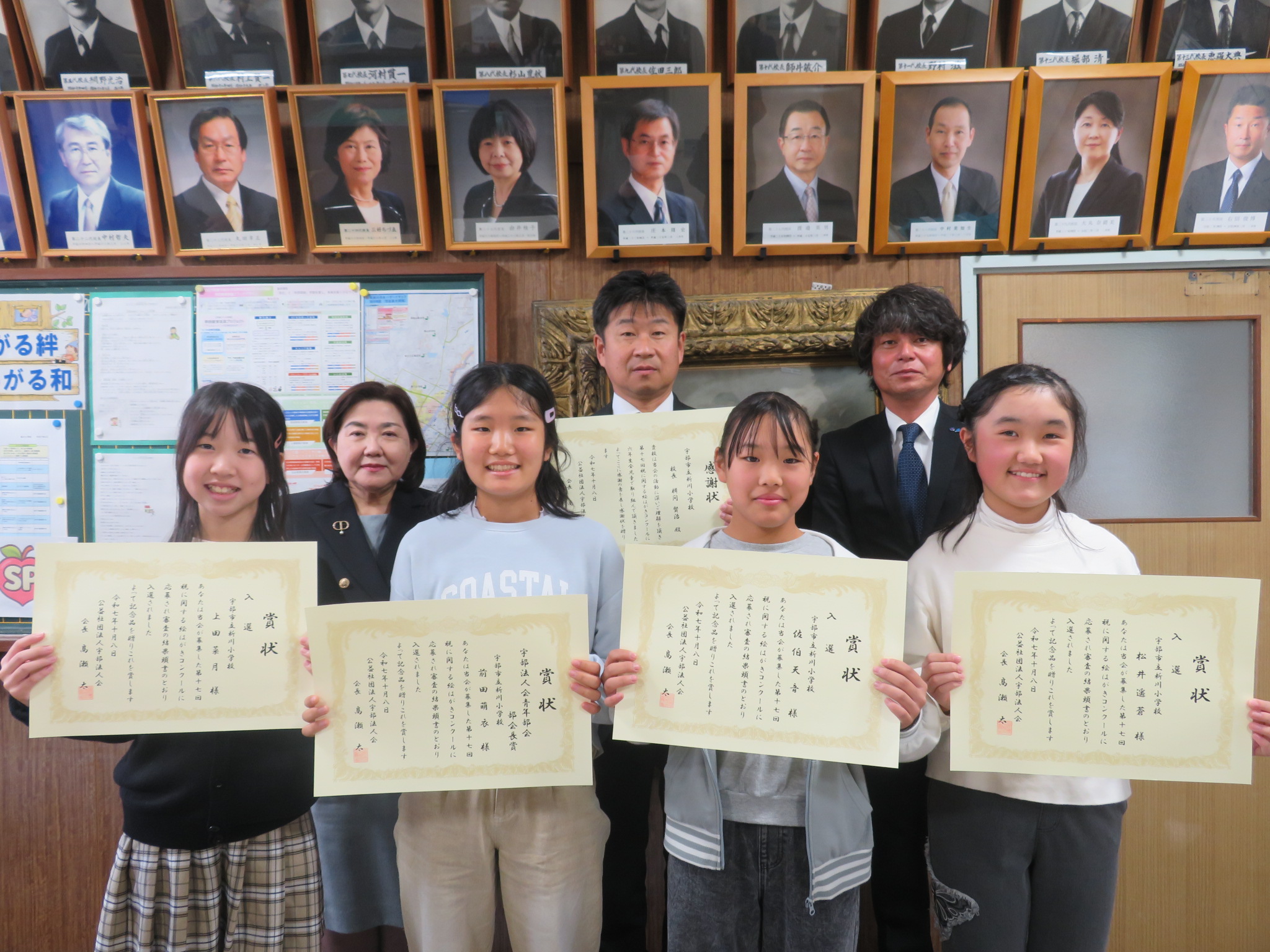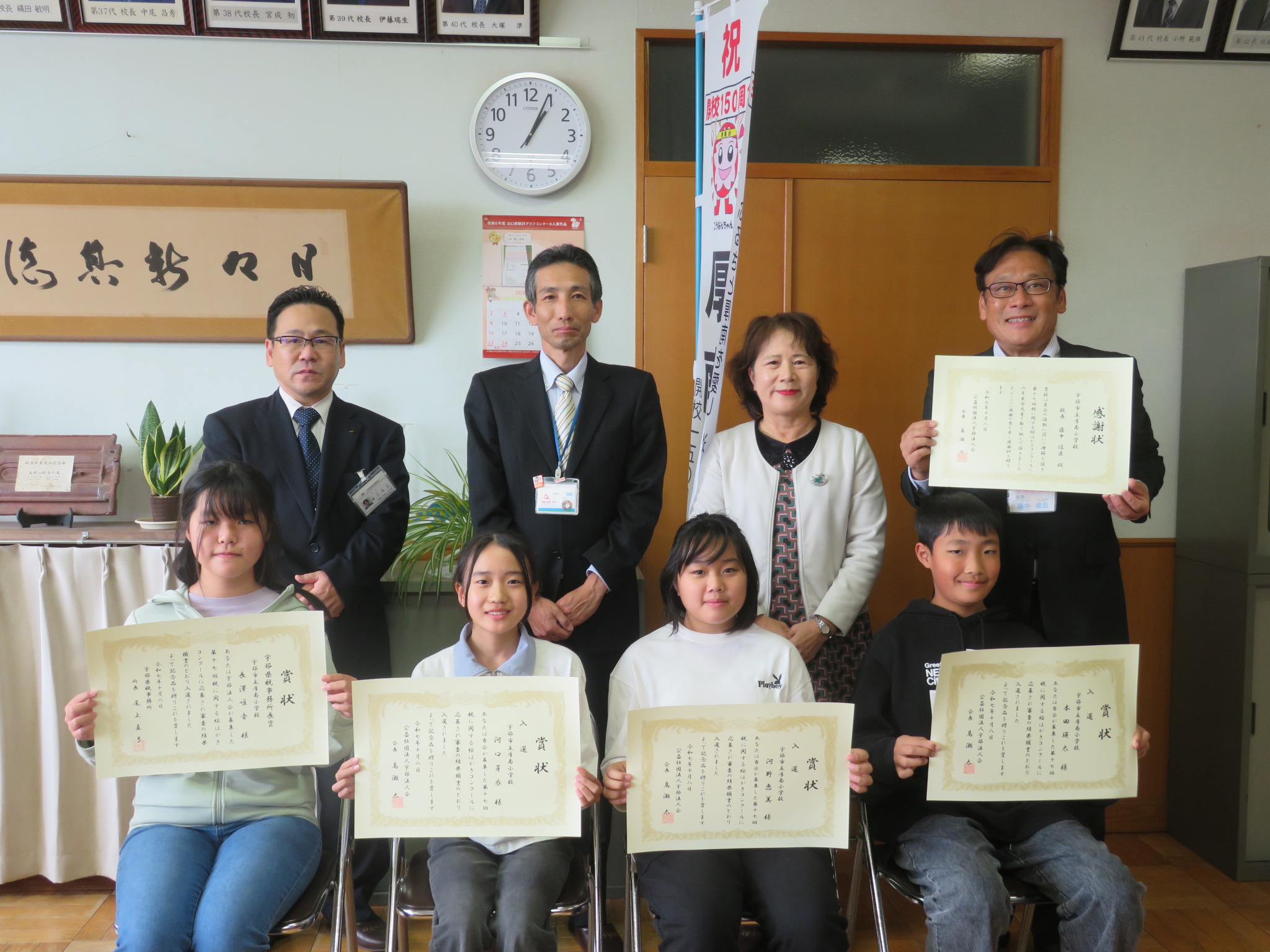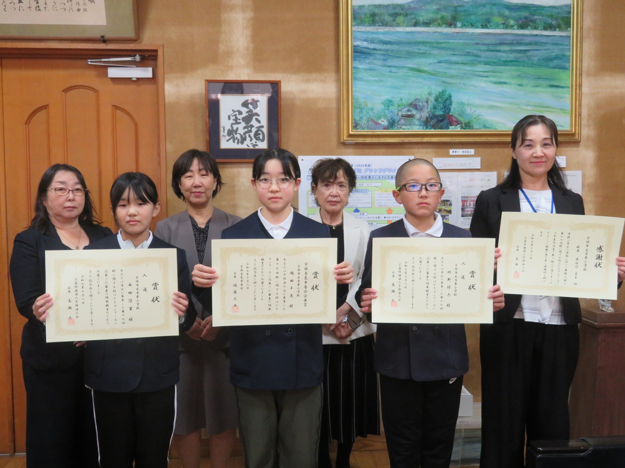 宇部市内小学校6年生を対象に、「第17回税に関する絵はがきコンクール」を女性部会主催で開催し、19校から887枚と多くのご応募いただきました。入賞・入選を受賞された児童と学校表彰を受けられる小学校に訪問し、表彰式を開催しました。みなさまご参加いただき、ありがとうございました。