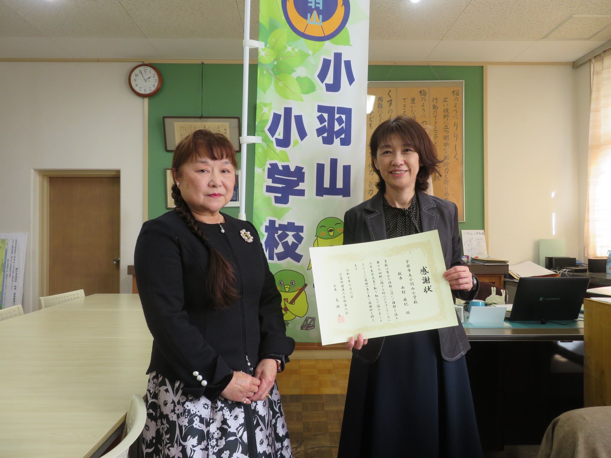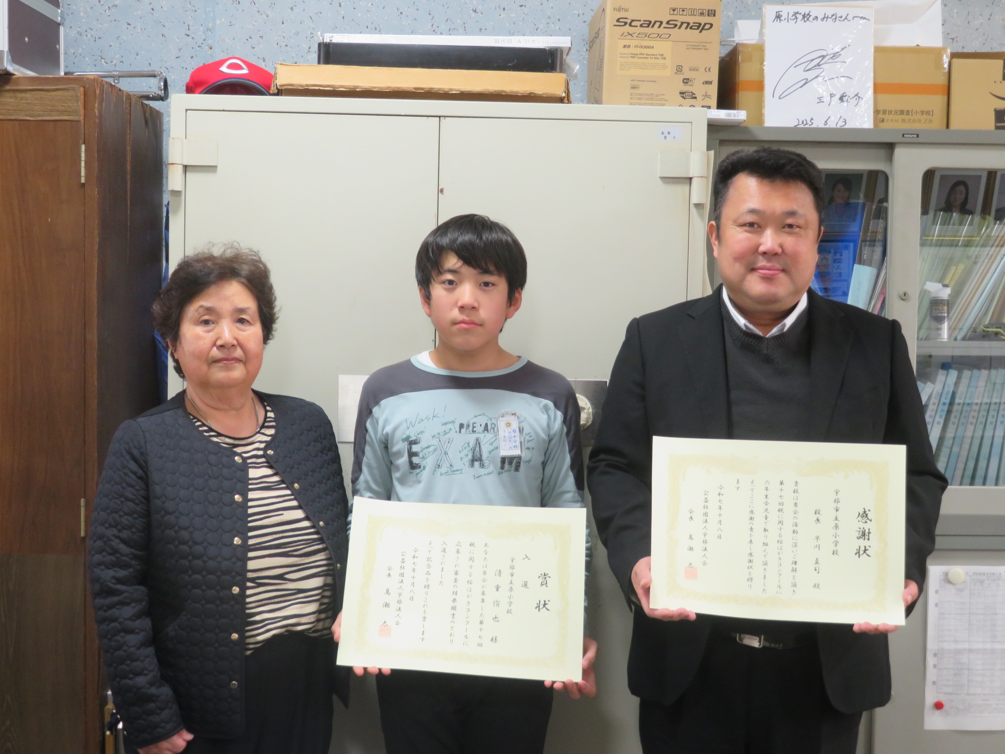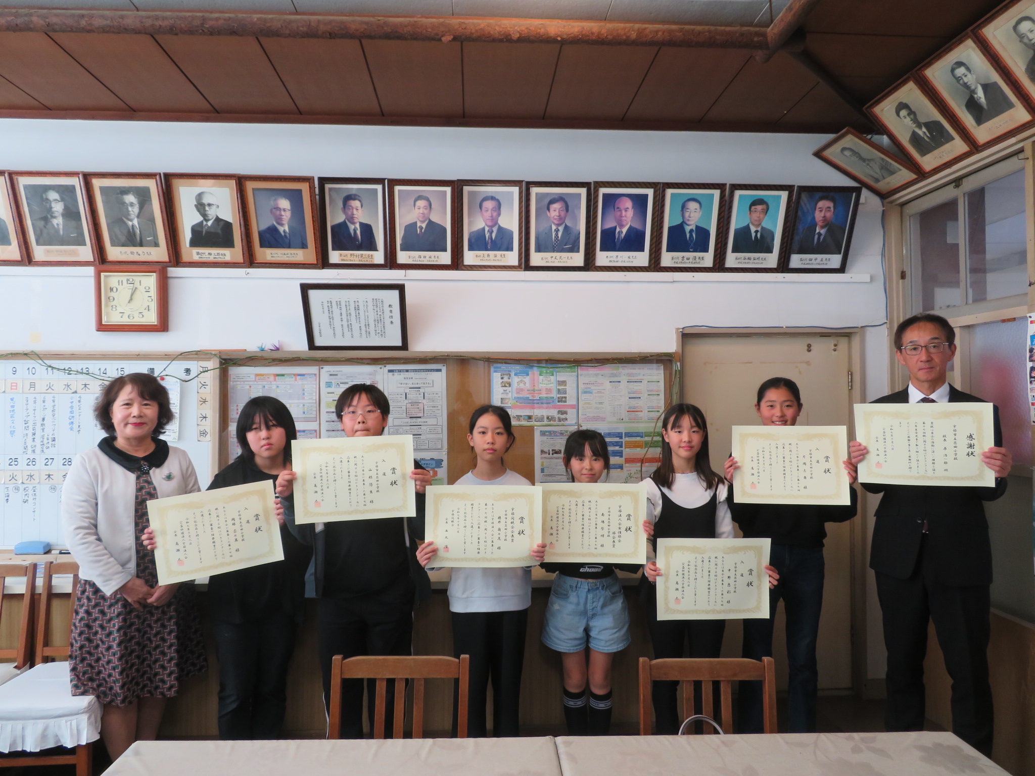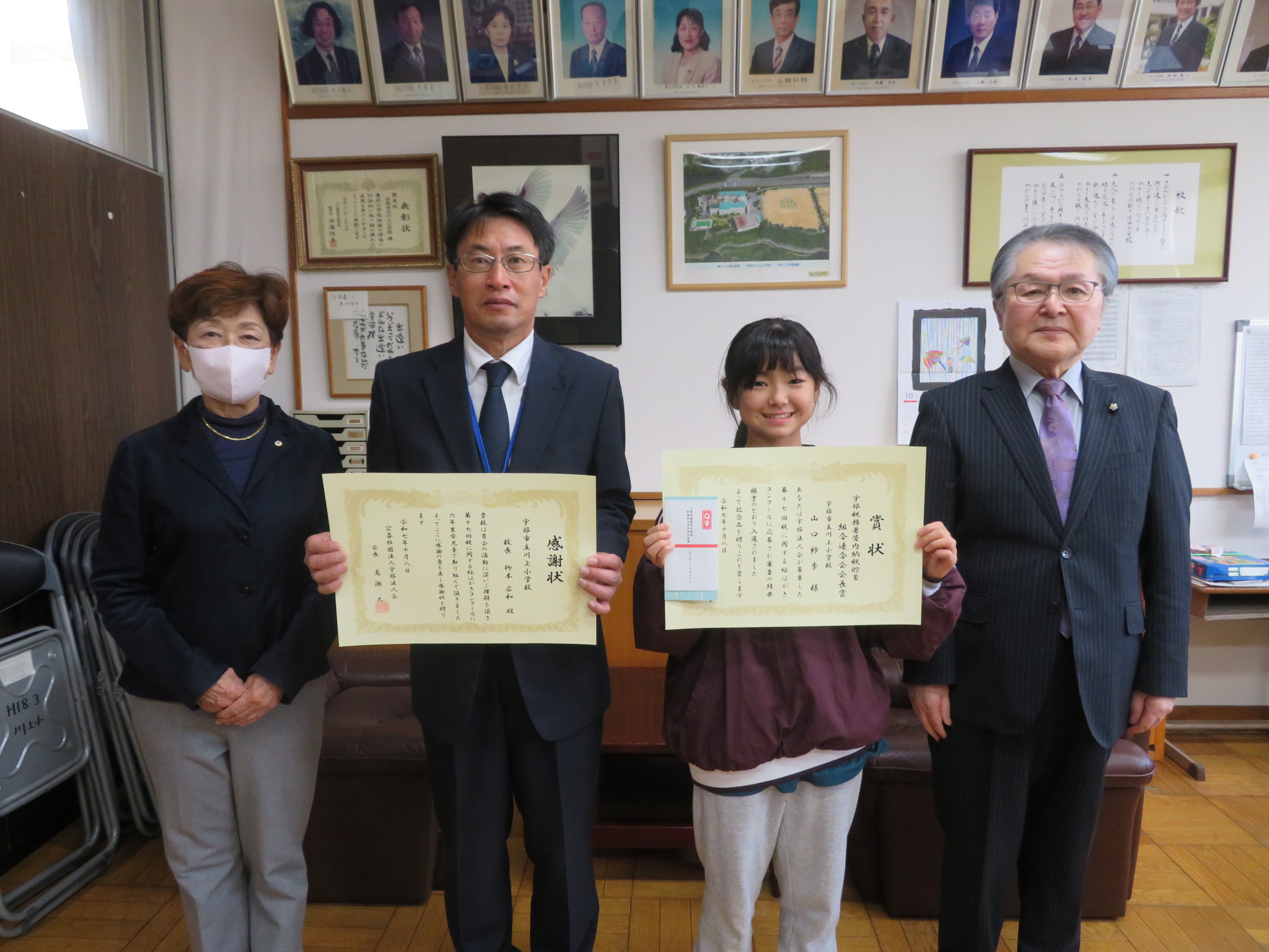 宇部市内小学校6年生を対象に、「第17回税に関する絵はがきコンクール」を女性部会主催で開催し、19校から887枚と多くのご応募いただきました。入賞・入選を受賞された児童と学校表彰を受けられる小学校に訪問し、表彰式を開催しました。みなさまご参加いただき、ありがとうございました。