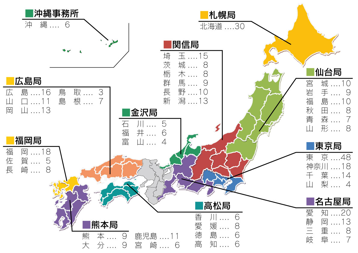 ●法人会の組織図 ●国税局エリア別単位会法人会数