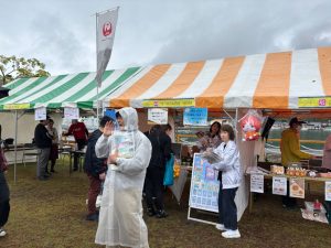 - 内容 第12回やわたはま産業まつりにて、税務署職員の方と一緒に税についての案内チラシと食品ロス削減チラシ、防災グッズの配布を行いました。