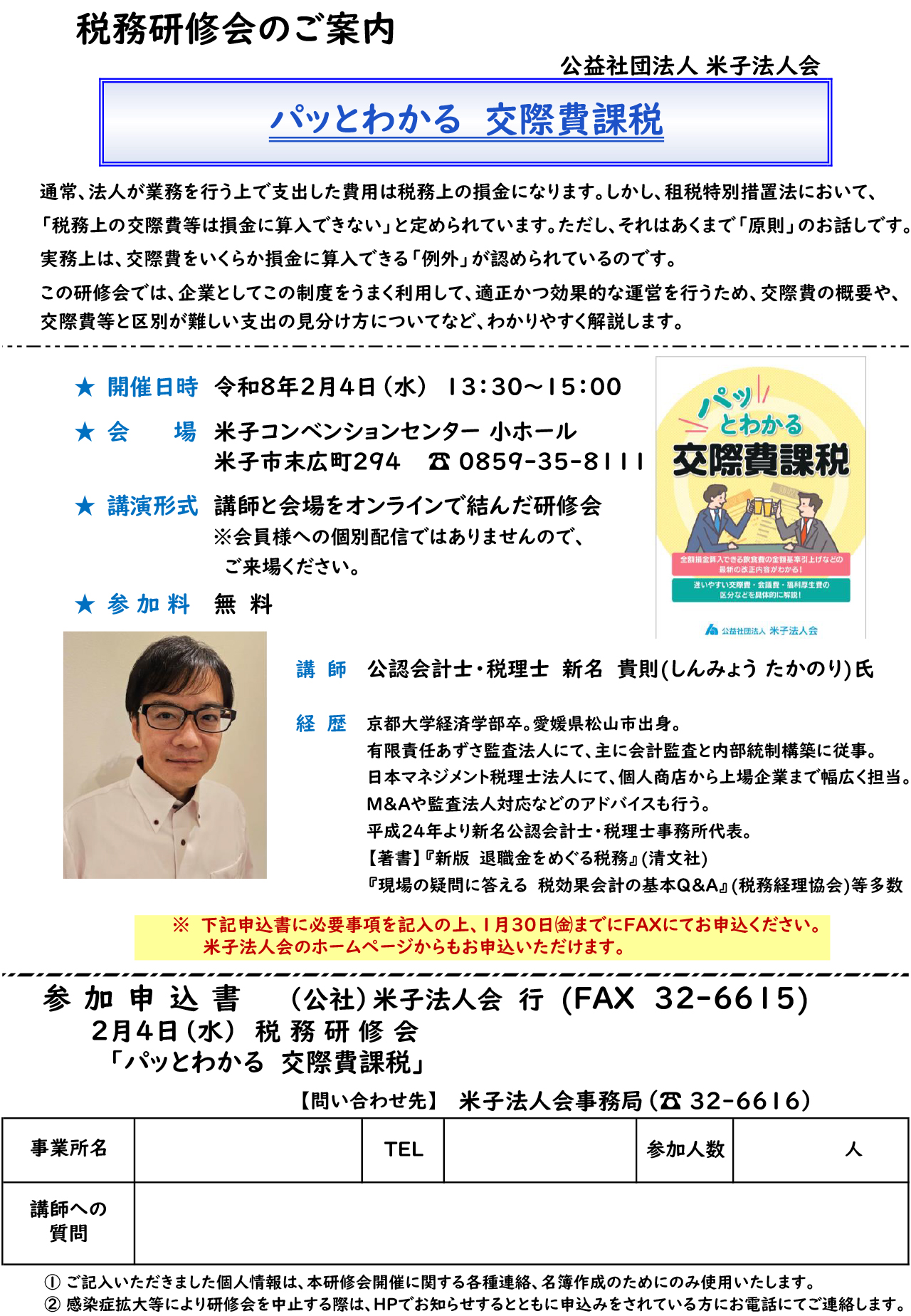 [FAX]0859-32-6615(公益社団法人 米子法人会宛て)
